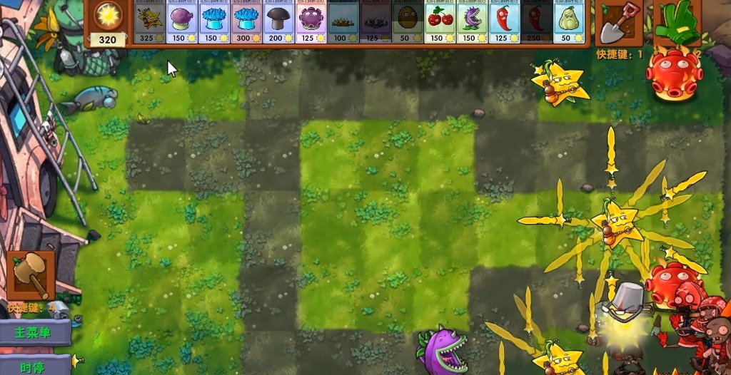 5、海星射手的星星是四散攻击的,有了仙人掌杨桃可以帮助星星回来向僵尸方向进行攻击。