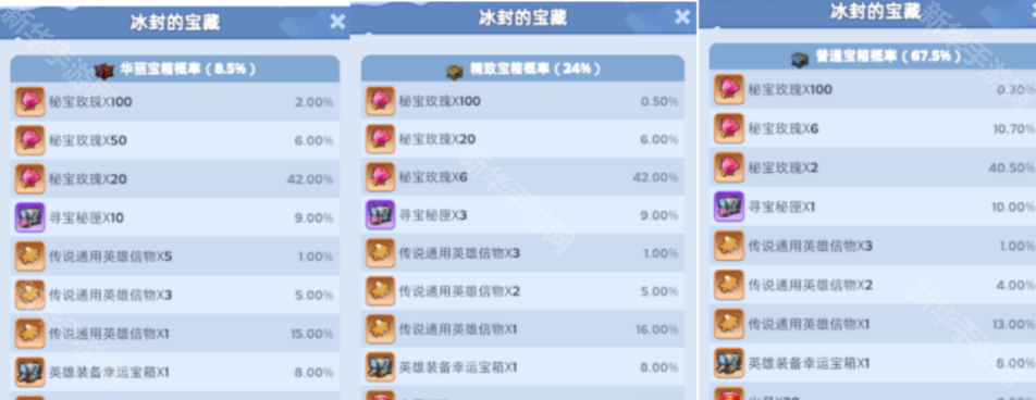 普通宝箱:每次开启普通宝箱获得秘宝玫瑰的数学期望值则为:1.75朵